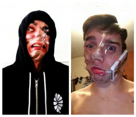 脸缠胶带玩自拍面部狰狞恐怖图片1